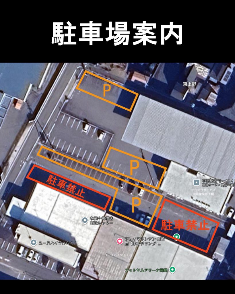 〒444-0007 愛知県岡崎市大平町東上野34-1 岡崎インターを降りて豊橋方面へ3分