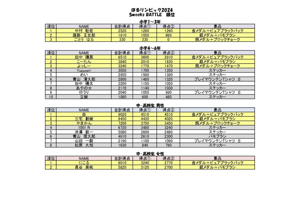 予選カテゴリー分けは男女のみ、決勝カテゴリーは男子オープン/男子マスター/男子ミドル/女子の4カテゴリーで行います。